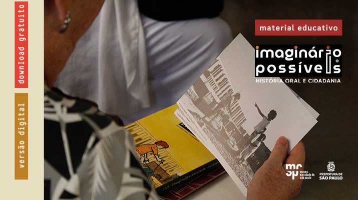 Audiodescrição do material educativo “Imaginários Possíveis: história oral e cidadania”. A partir do Acervo de História Oral do Museu é destacado narrativas que atravessam lutas, resistências e sonhos de quem construiu — e ainda constrói — a cidade de São Paulo. Organizado em dois eixos — Direito à Memória: contranarrativas e Direito à Cidade: legado das lutas — o material é um convite à vigília – uma escuta atenta, comprometida com quem contou, com quem escreveu, e com quem chega agora para continuar reimaginando futuros.