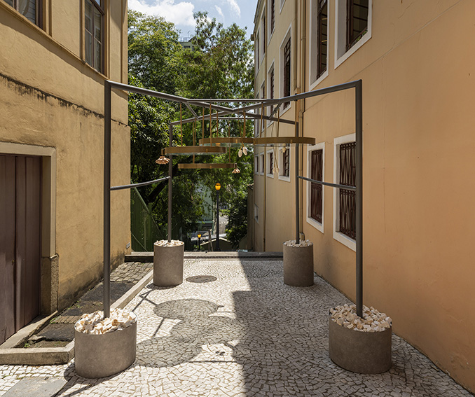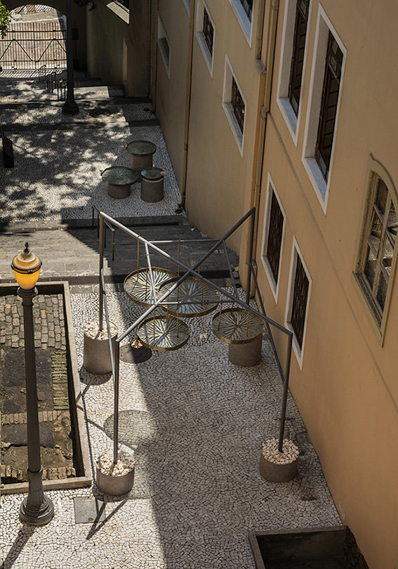 Uma ponte entre dois mundos. Metade submersa, metade voltada ao céu, a vitória-régia é um dos seres vegetais mais simbólicos da região amazônica. Combina transformação, erotismo vegetal e inteligência adaptativa, já que caminha de forma desenvolta no hibridismo que a vida lhe proporciona. O fenômeno natural que envolve sua floração é testemunho disso. Composto de duas noites, dois gêneros e duas cores, apresenta-se como uma coreografia entre tempo e luz. É sobre seu vasto universo simbólico e sensorial que se trata O mergulho de Naïá, instalação site-specific criada para o Beco do Pinto | Museu da Cidade de São Paulo pela artista multidisciplinar e pesquisadora olfativa Karola Braga.
